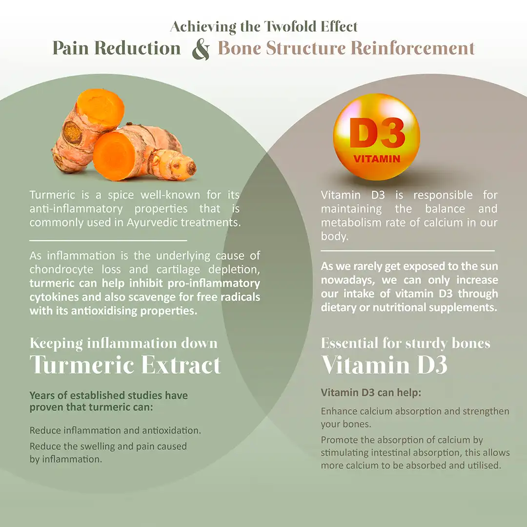 With that in consideration, the team behind MOVEON has included BonePep™ Hydrolysed Egg Yolk Peptide, a kind of peptide extracted from egg yolk that plays a crucial role in the bone development of chickens into its formulation. . BonePep™ can be TM easily digested and absorbed by the human body, thus improving our bone metabolism to increase bone density, thereby preventing osteoporosis.